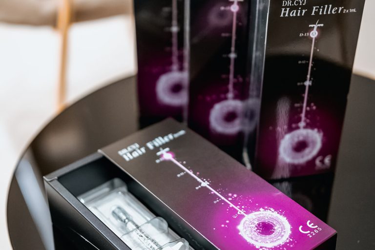 Dr. Cyj Hair Filler to peptydowa terapia włosów. Preparat stosowany w tej kuracji zawiera 7 rewolucyjnych, opatentowanych peptydów w połączeniu z kwasem hialuronowym. Częściowo stabilizowany kwas hialuronowy, zawarty w Dr. Cyj Hair Filler, ułatwia przenikanie i wprowadzenie w głąb skóry substancji i aktywnych składników preparatu.